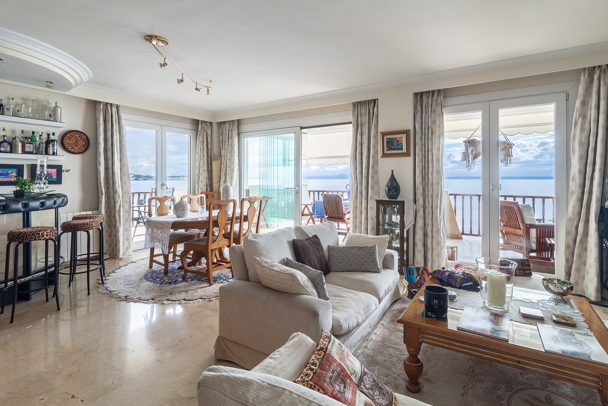 Esta propiedad frente al mar tiene una excelente ubicación. Las vistas no podrían ser mejores: a pocos metros del borde del agua con vistas al mar abierto y la isla de Illetas.