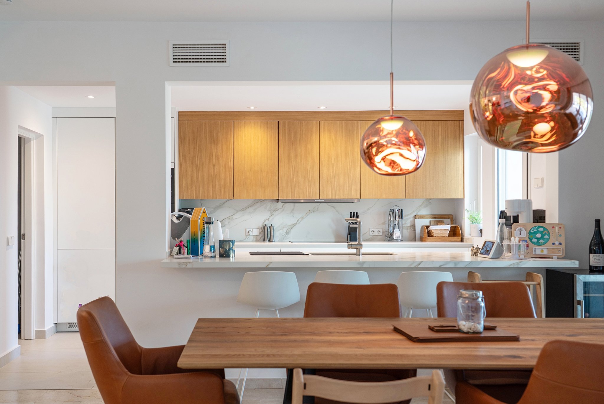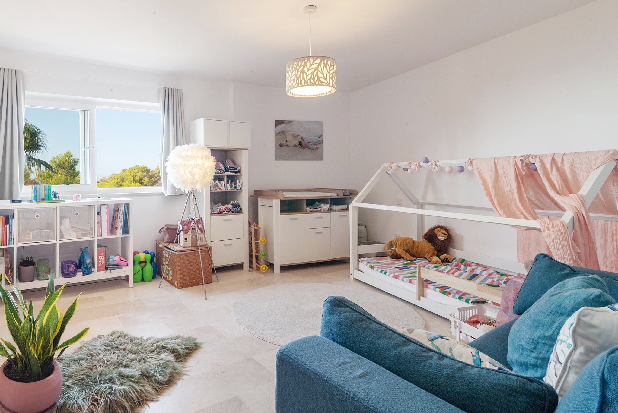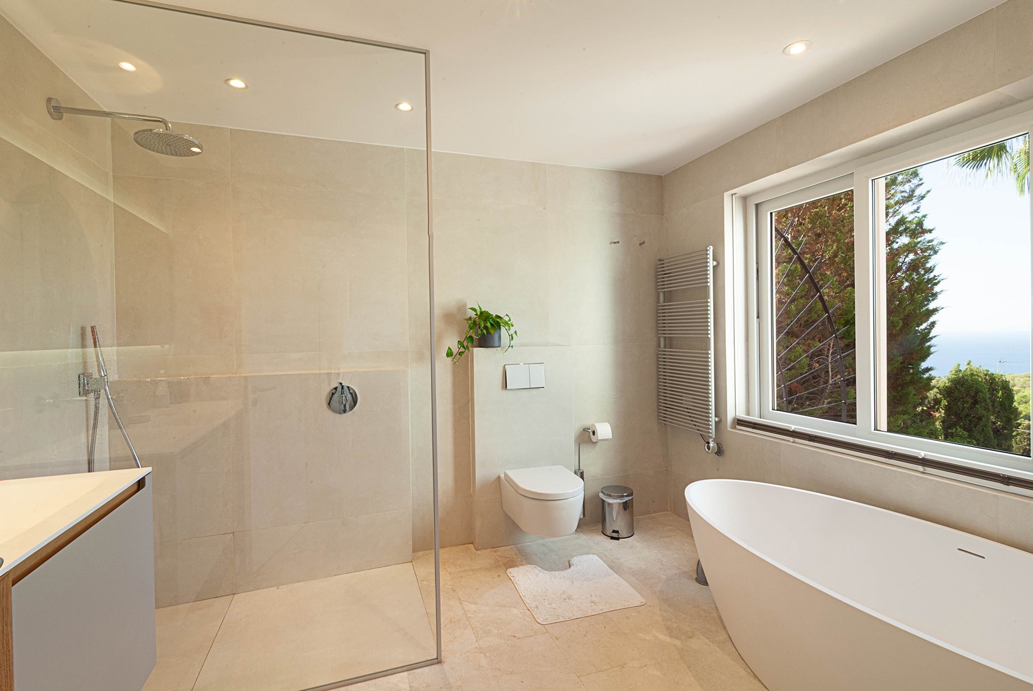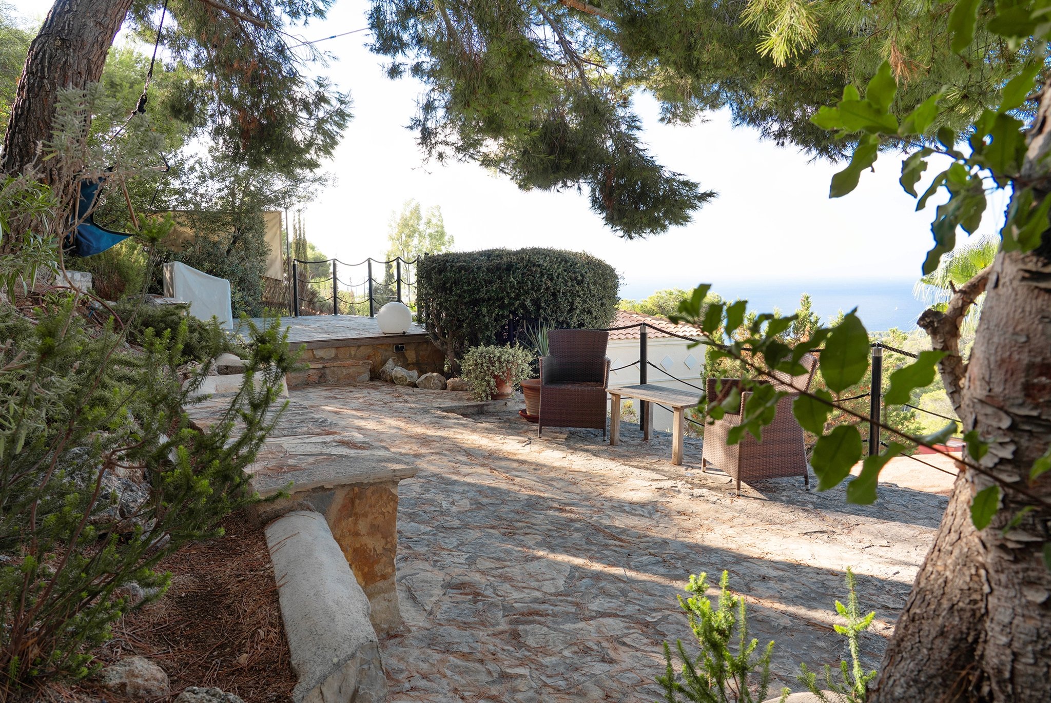 La villa fue renovada en 2025 y ofrece 418 m² de superficie habitable sobre una parcela de 754 m². Cuenta con 4 dormitorios y 4 baños, con una distribución bien pensada y espacios abiertos y generosos. El salón es amplio y dispone de chimenea, mientras que la cocina es moderna y totalmente equipada.