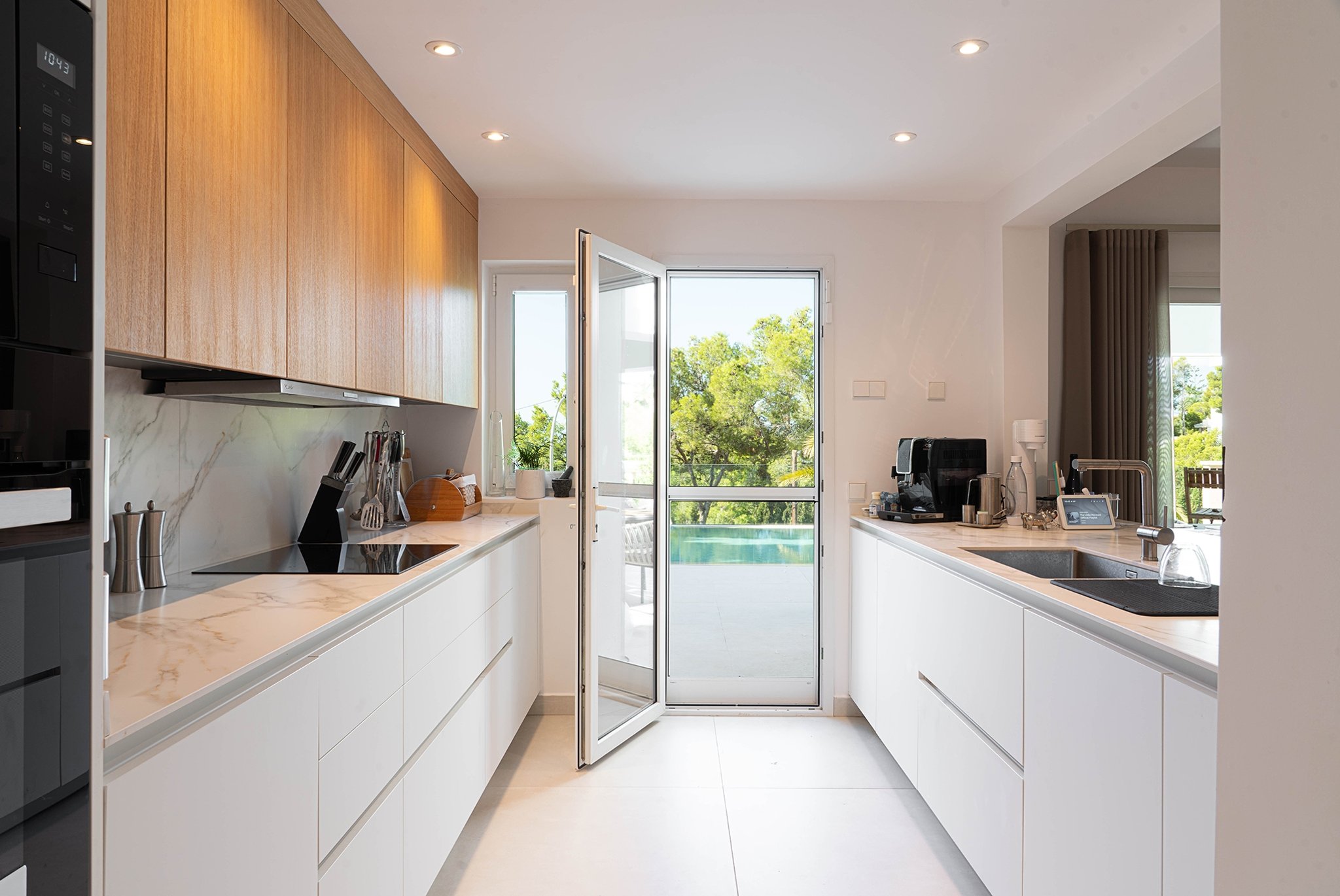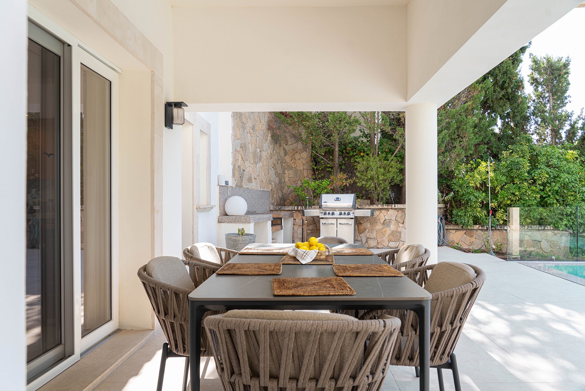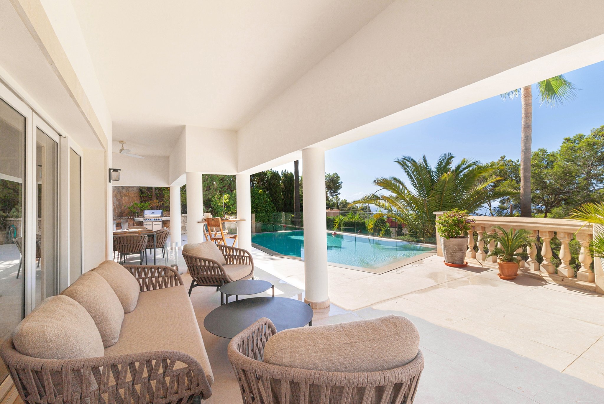 La villa es elegante en todo su conjunto y está diseñada en un estilo mediterráneo clásico, con materiales de alta calidad y acabados cuidados en todos los detalles.
