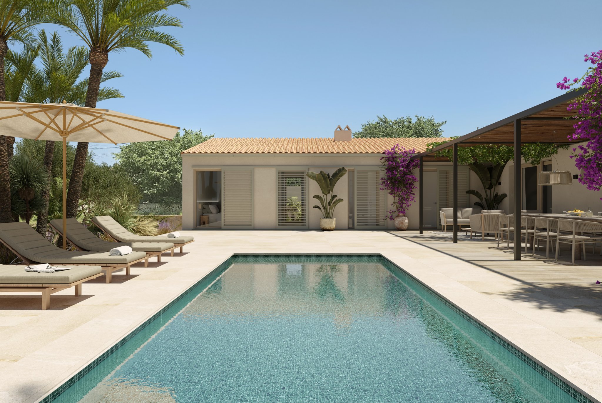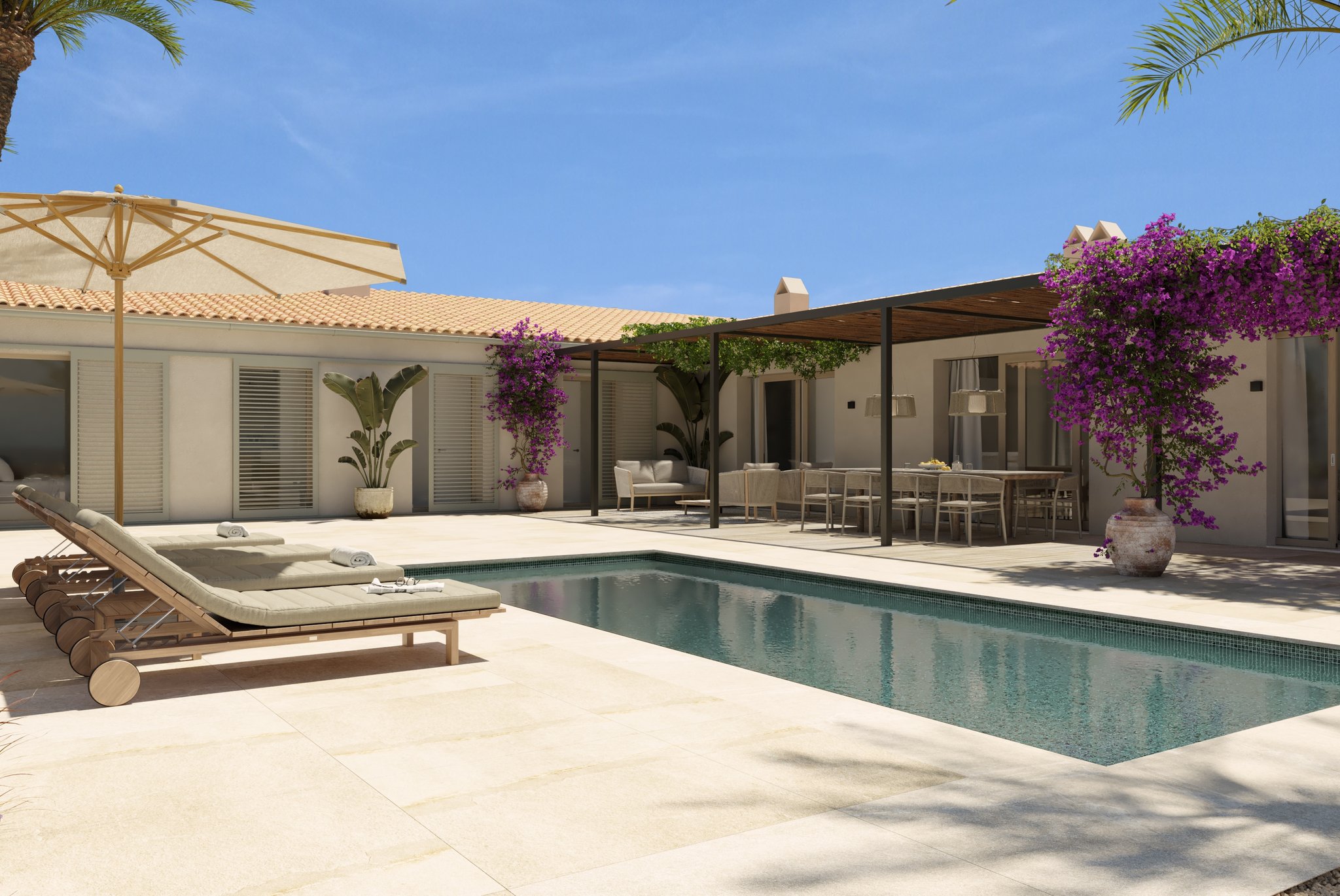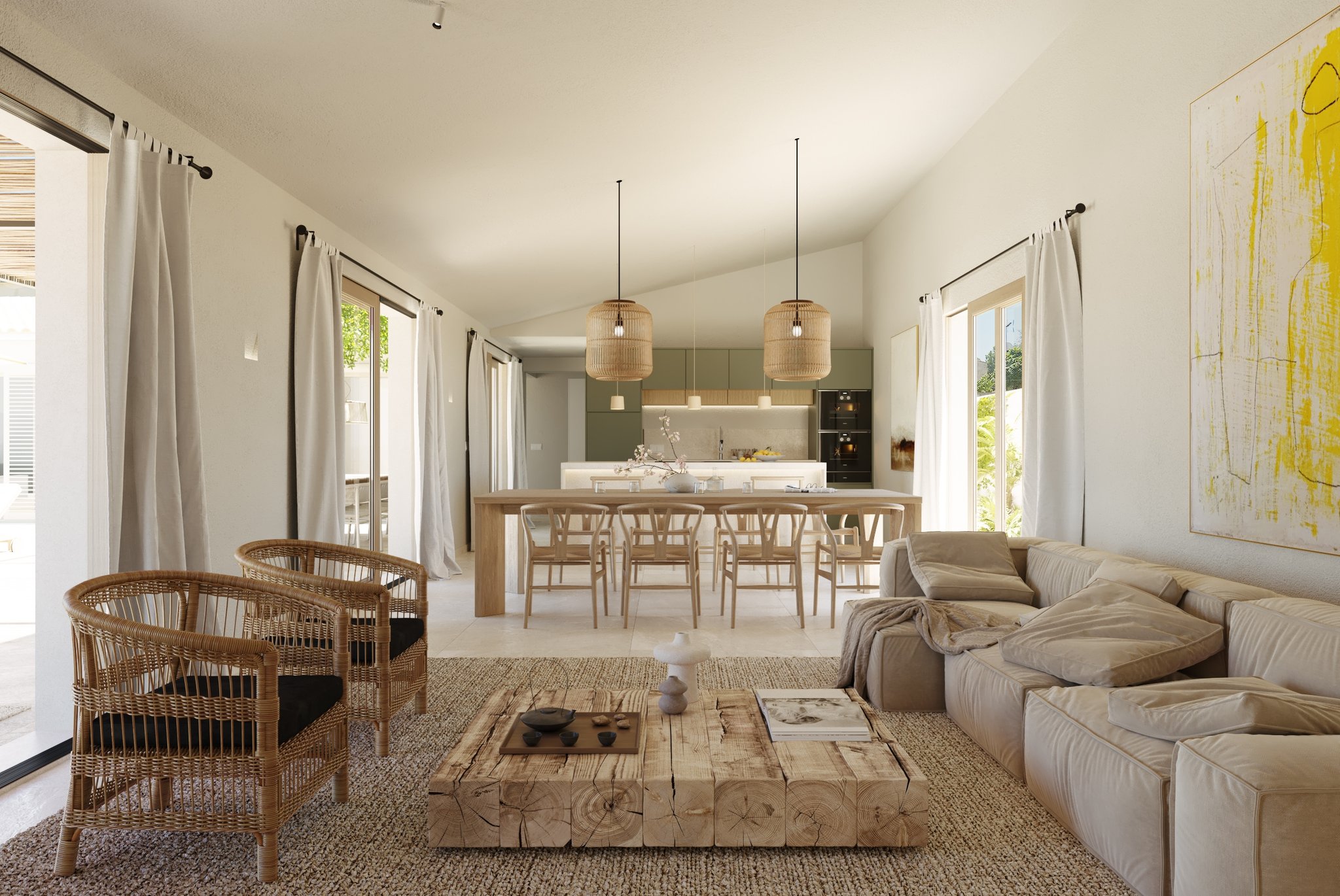 Este exclusivo proyecto de obra nueva se encuentra en Sineu, en el centro de Mallorca. La casa tiene una superficie de 315 metros cuadrados y su finalización está prevista para el verano de 2026.