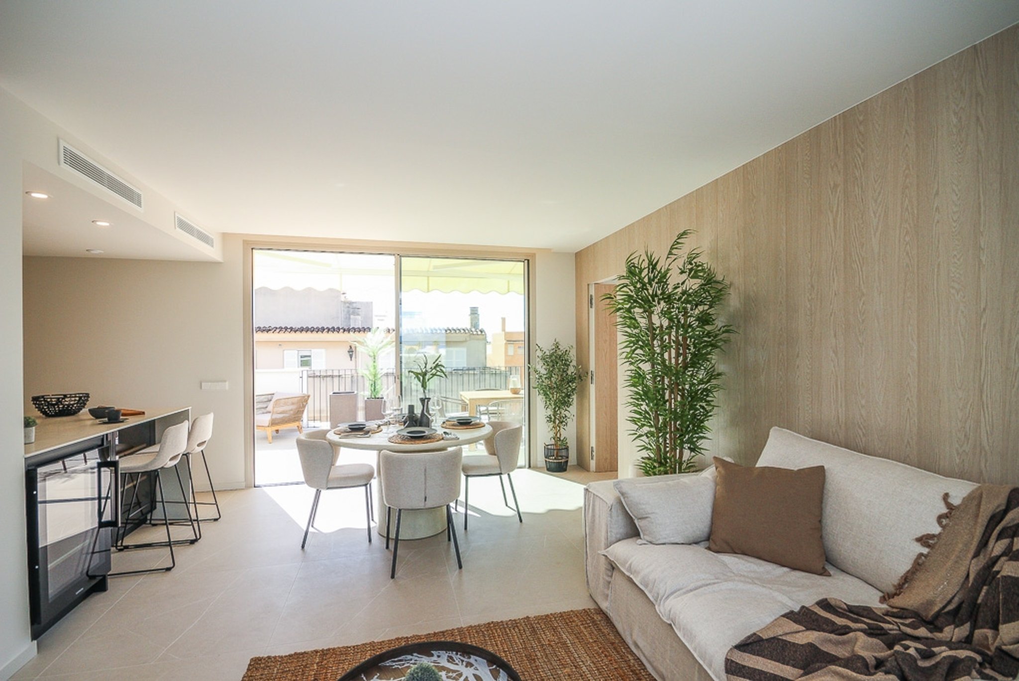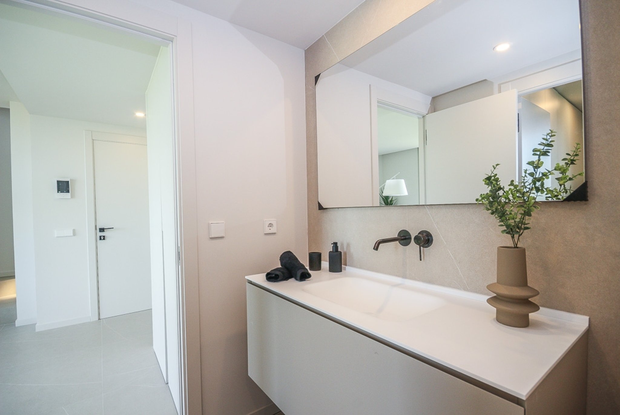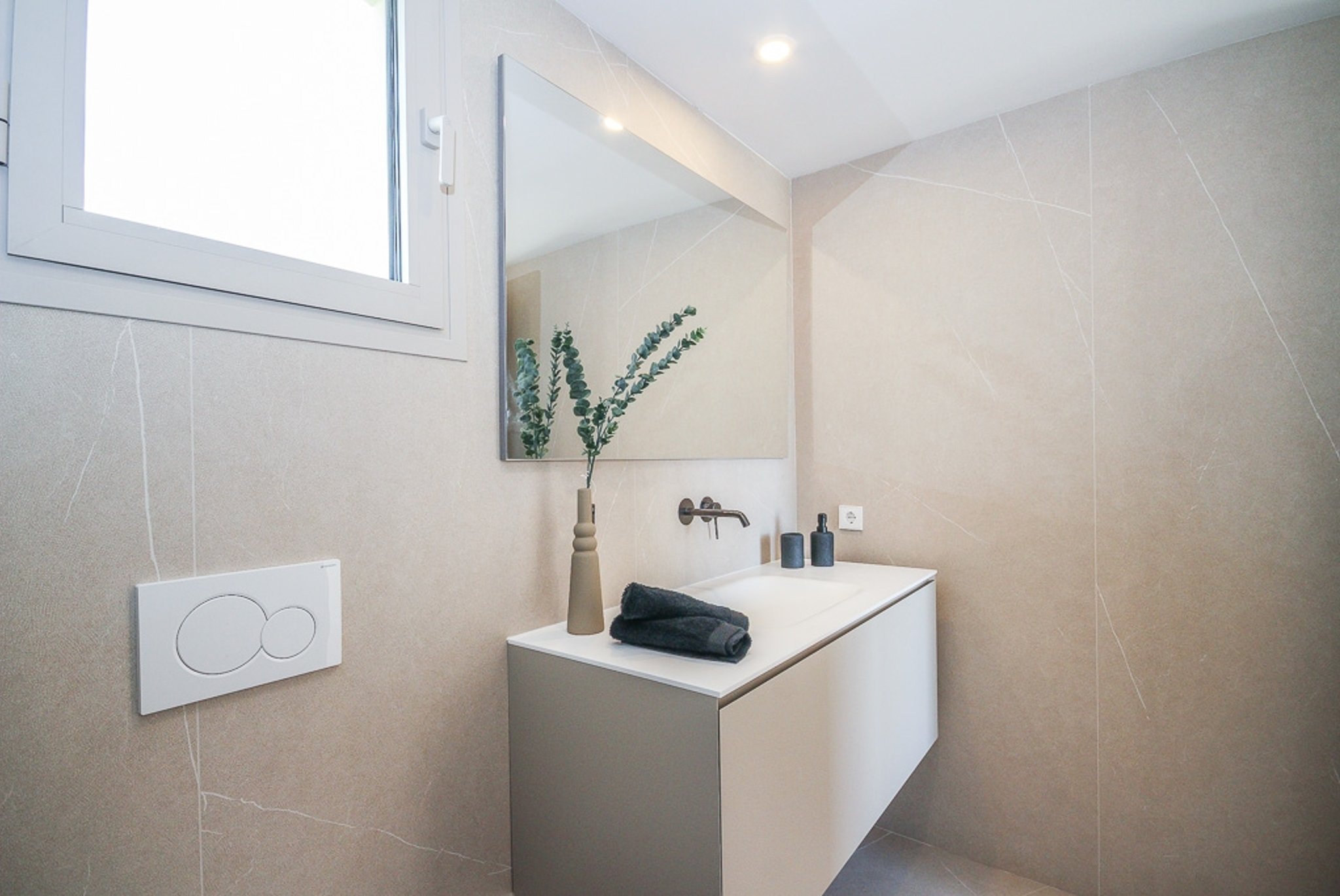 La propiedad es elegante y moderna, con materiales de alta calidad en todo el piso. Incluye suelos de gres efecto piedra, detalles en piedra natural, calefacción por suelo radiante, aire acondicionado individualizado y un sistema aerotérmico, todo pensado para ofrecer el máximo confort y una sensación de elegancia contemporánea.