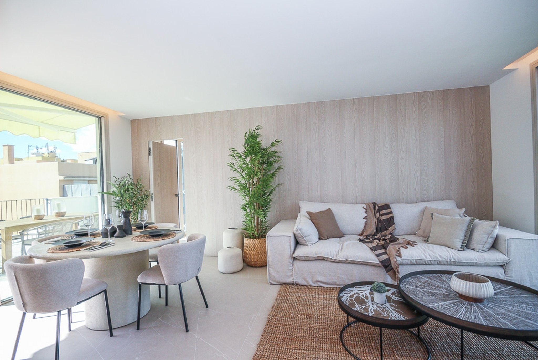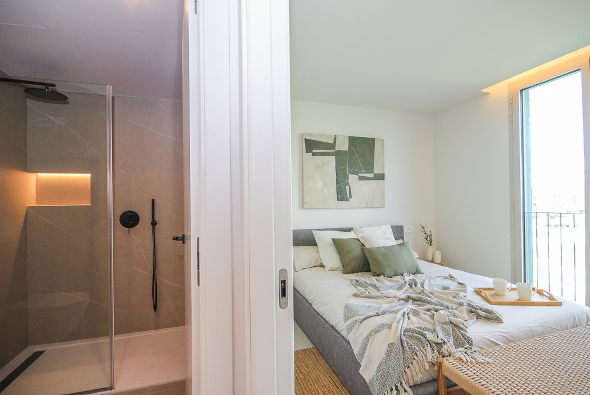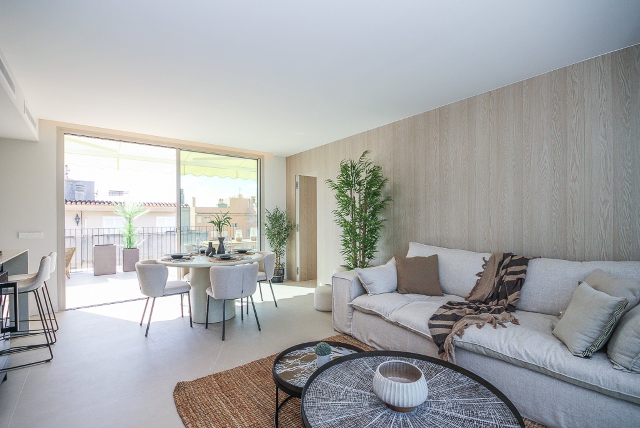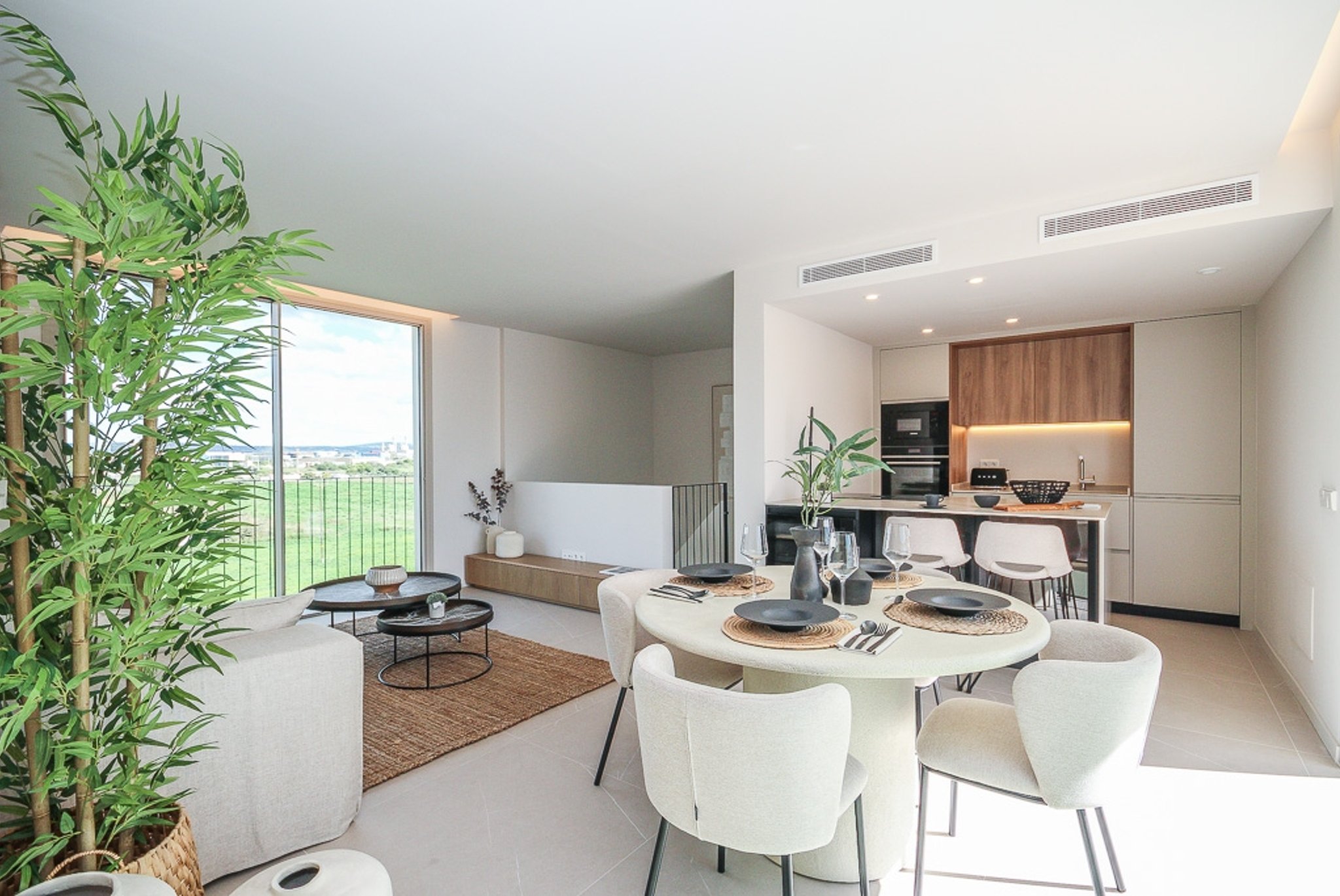 La propiedad es elegante y moderna, con materiales de alta calidad en todo el piso. Incluye suelos de gres efecto piedra, detalles en piedra natural, calefacción por suelo radiante, aire acondicionado individualizado y un sistema aerotérmico, todo pensado para ofrecer el máximo confort y una sensación de elegancia contemporánea.
