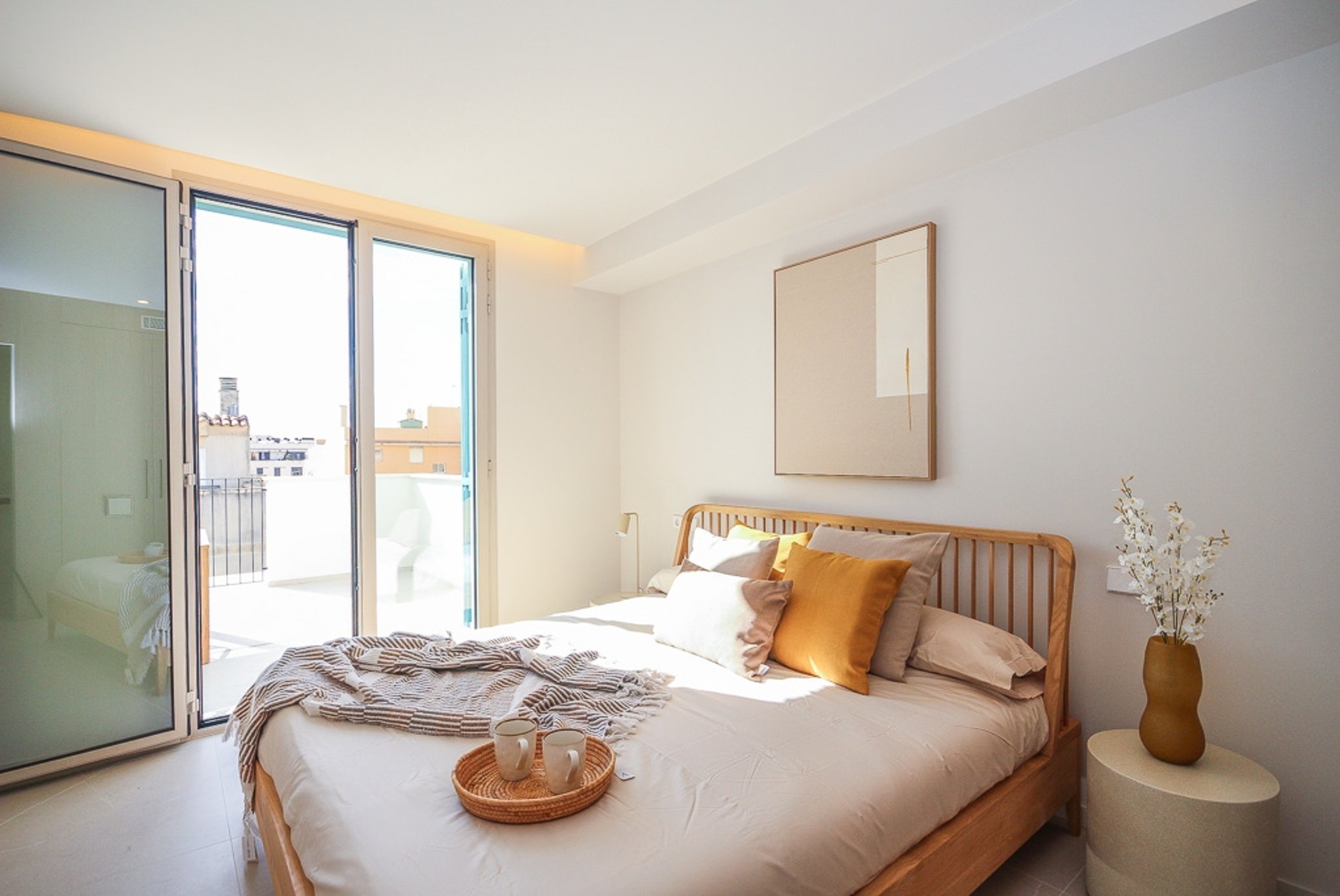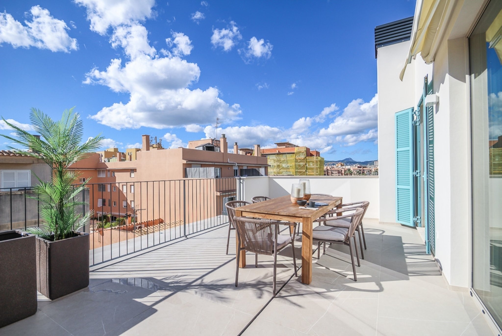 Desde el salón se accede a la amplia terraza de 35 m², con vistas a las montañas. Además, cuenta con dos balcones más pequeños.