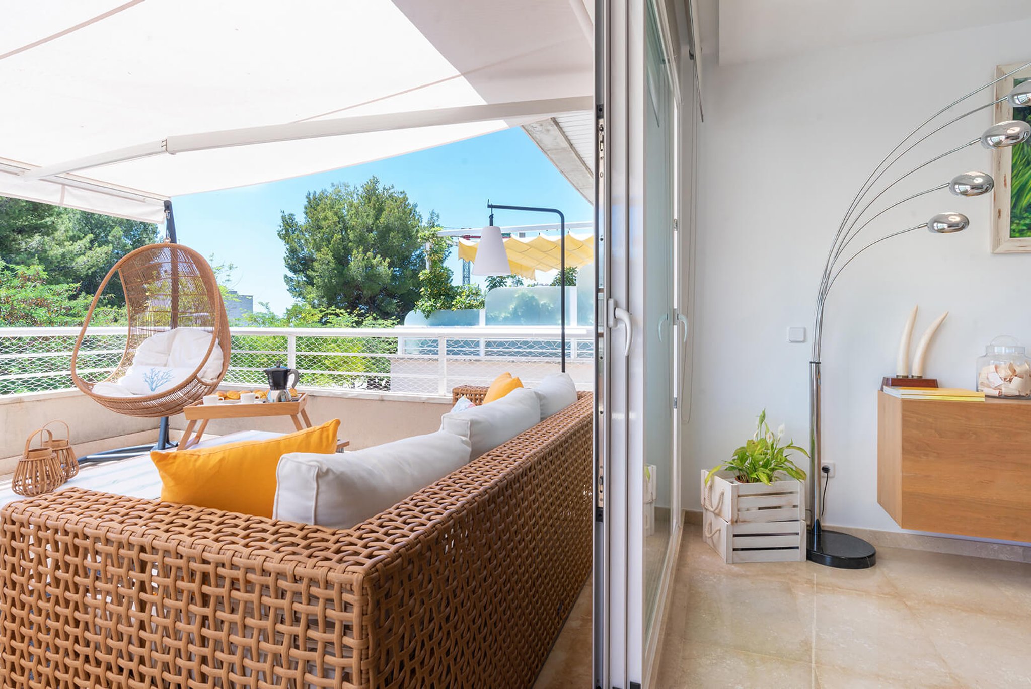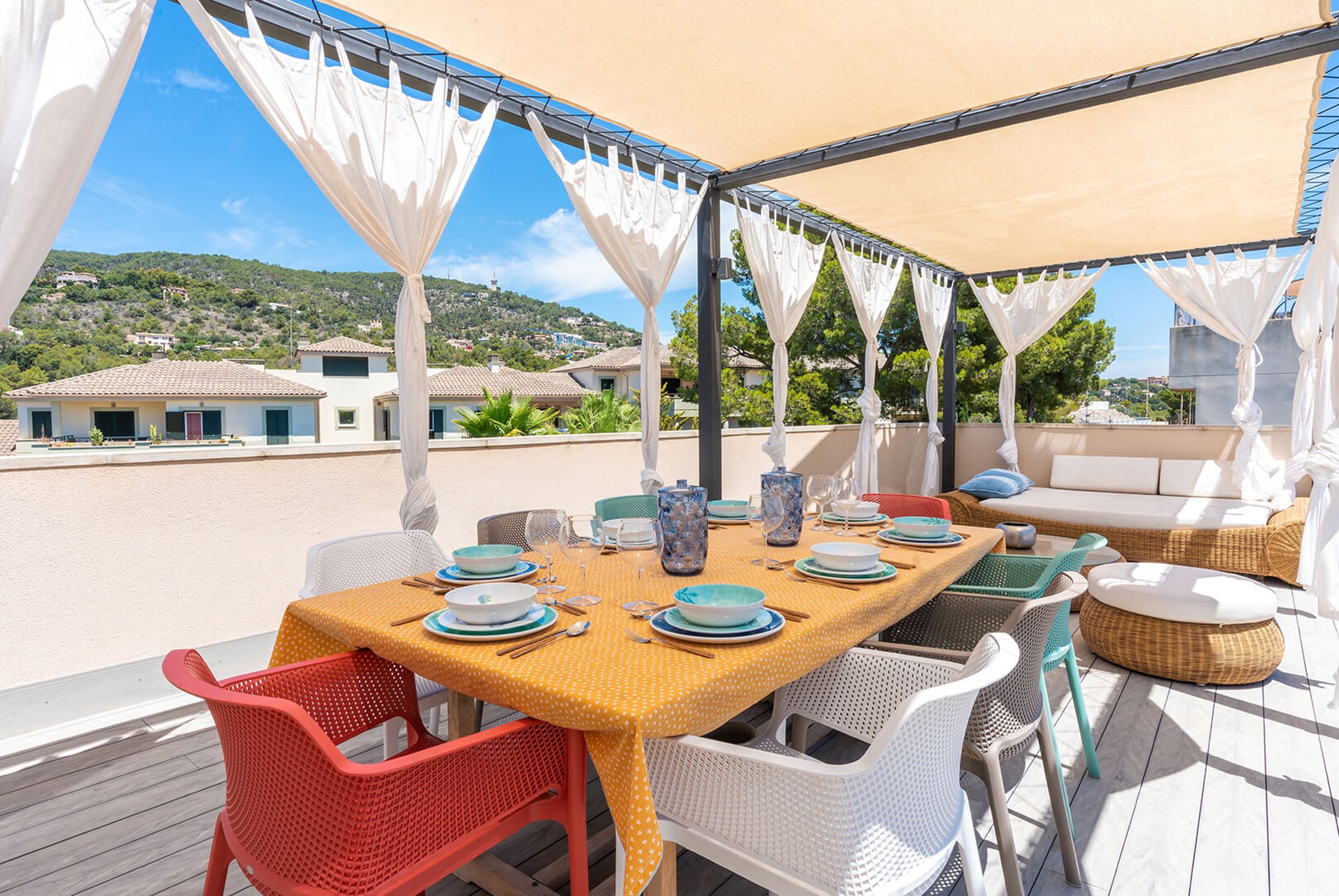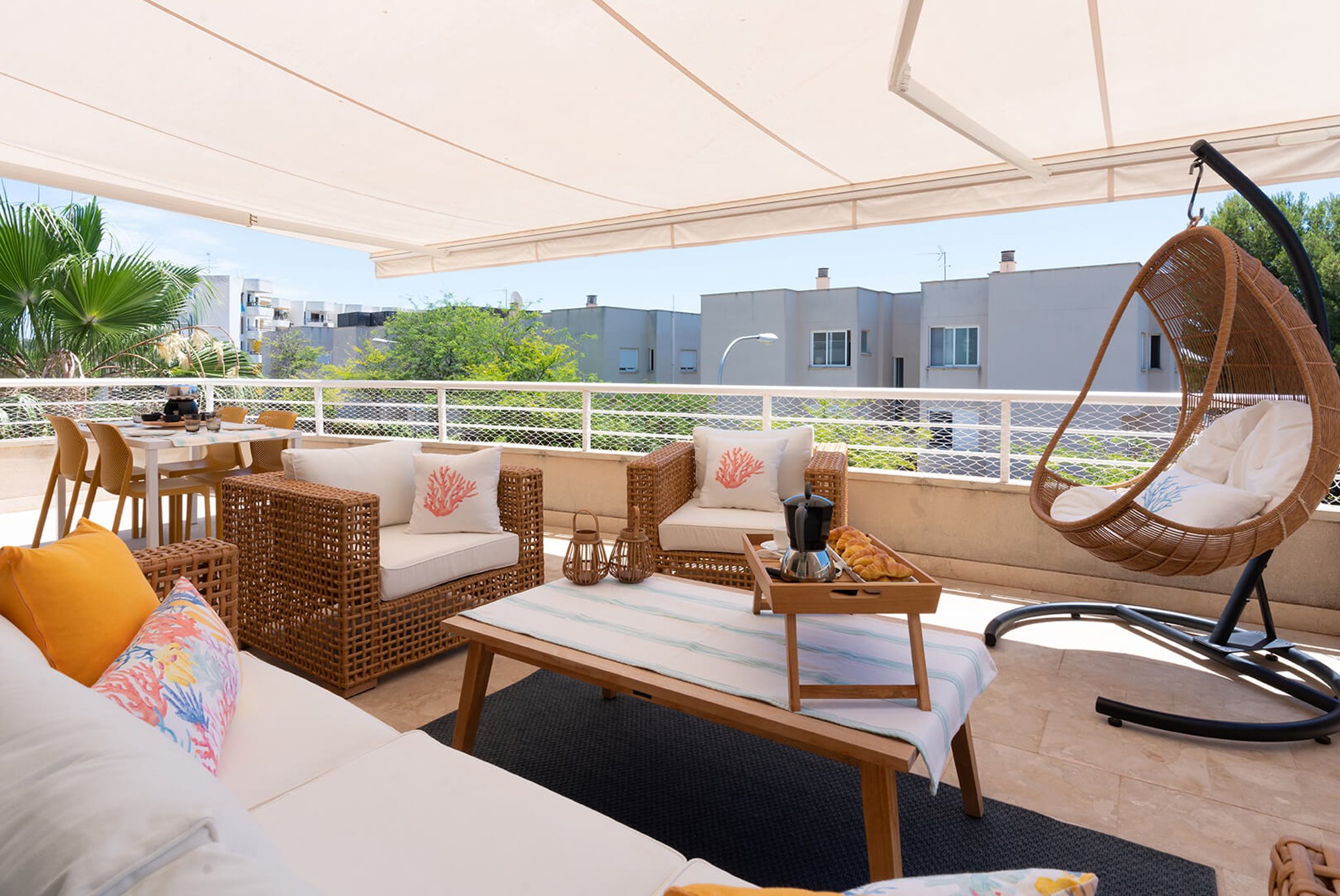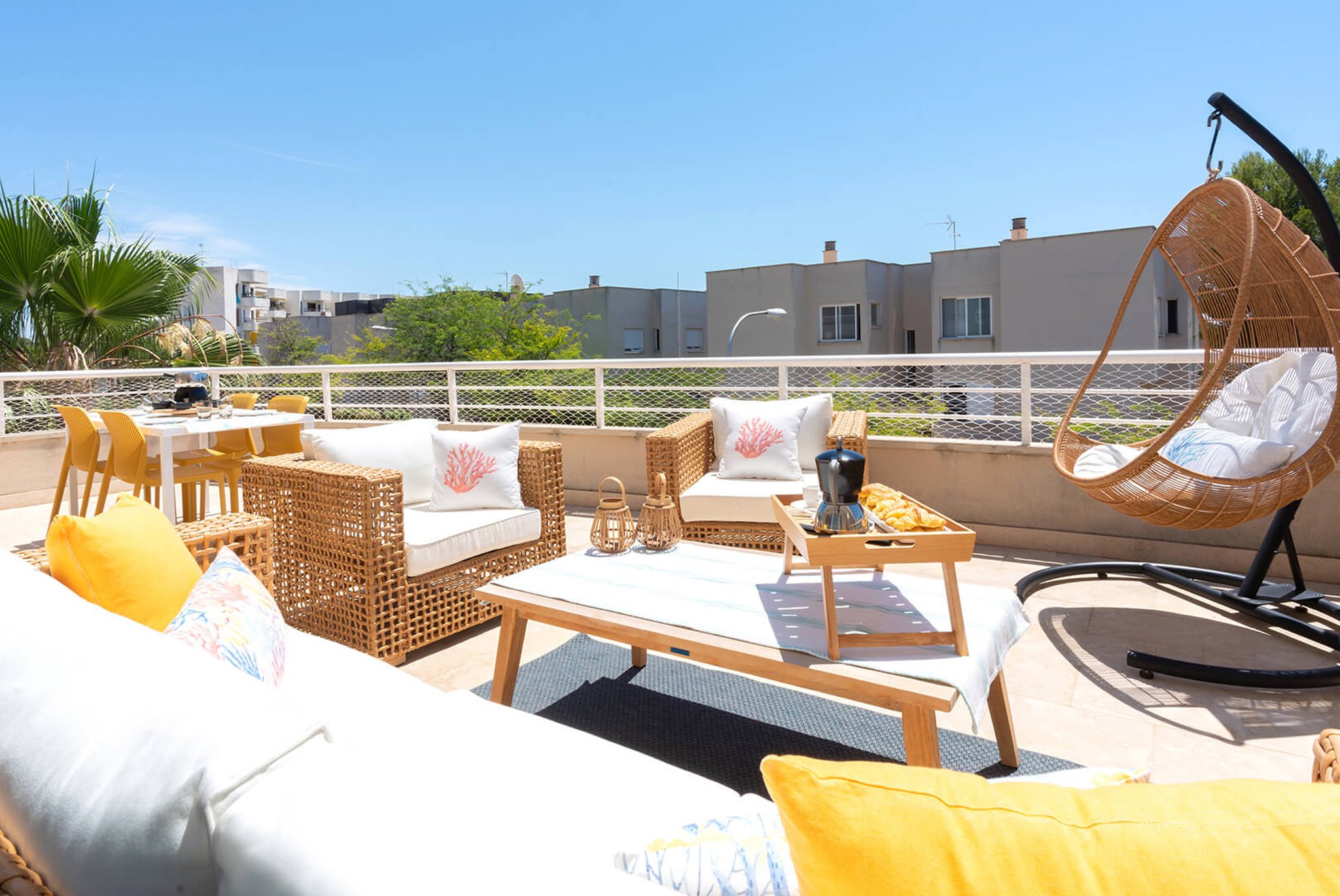 Este ático único se encuentra en el último piso de un pequeño edificio con solo 6 vecinos en San Agustín. El apartamento tiene una superficie habitable de 80 m2 más dos grandes terrazas. La vivienda consta de dos dormitorios, dos baños, una cocina totalmente equipada con coladuría y una sala de estar luminosa. El salón tiene puertas correderas de cristal que se abren a una terraza de 28 m2. Desde esta terraza, hay una escalera que lleva a la terraza de la azotea de 100 m2 que ha sido bellamente diseñada y cuenta con una piscina privada. ¡Un hogar perfecto para relajarse y/o entretenerse con familiares y amigos!