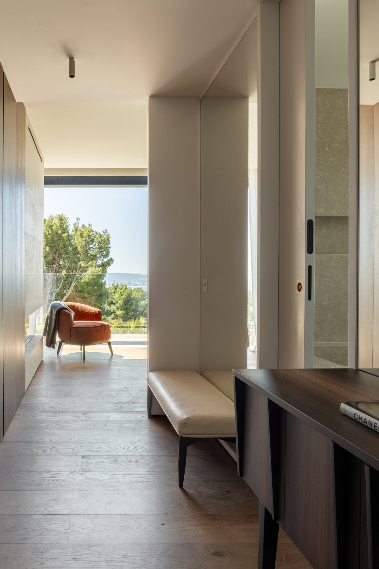Este chalet de obra nueva está en Portals Nouse y tiene vistas impresionantes al mar, un diseño moderno y detalles cuidadosamente seleccionados.