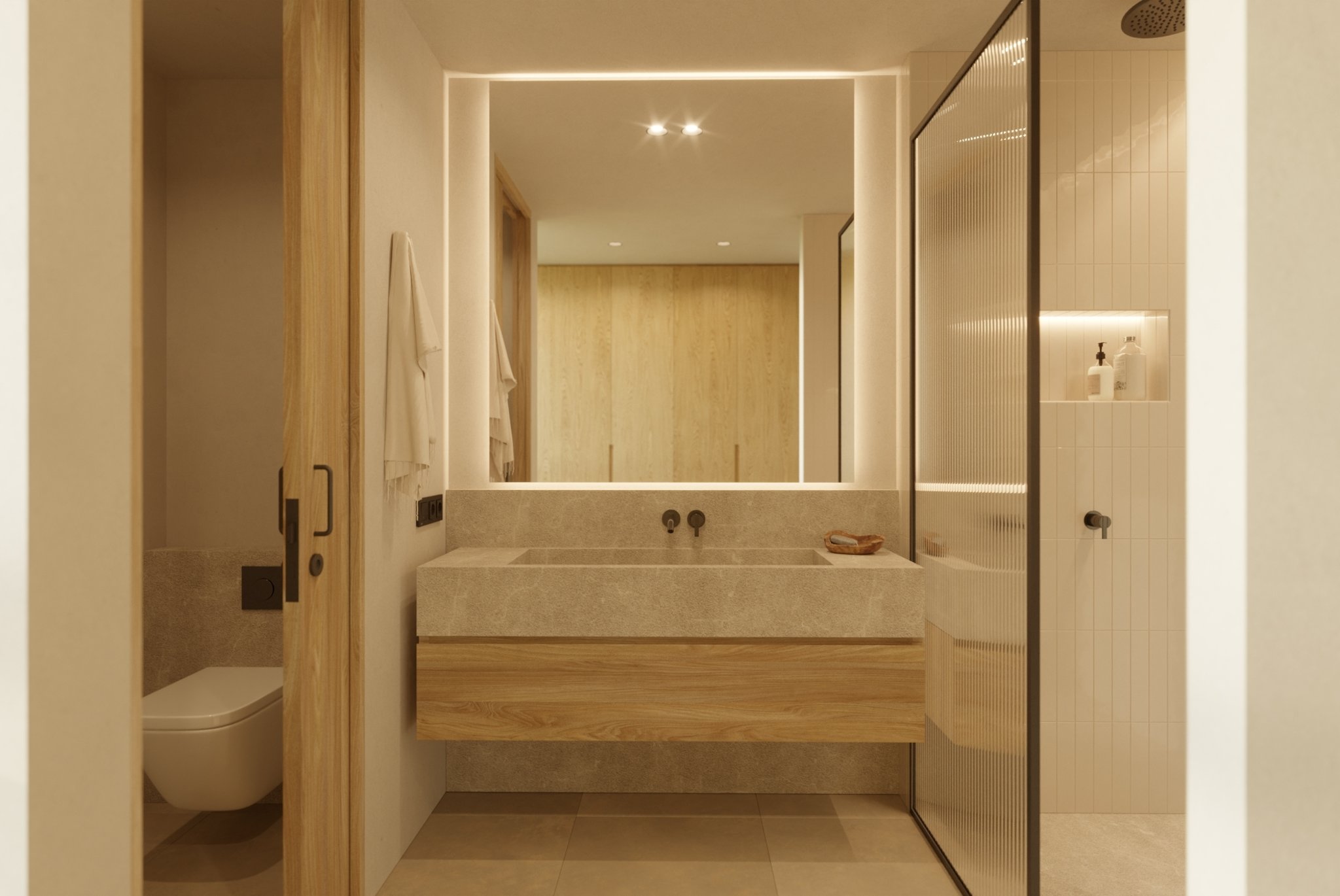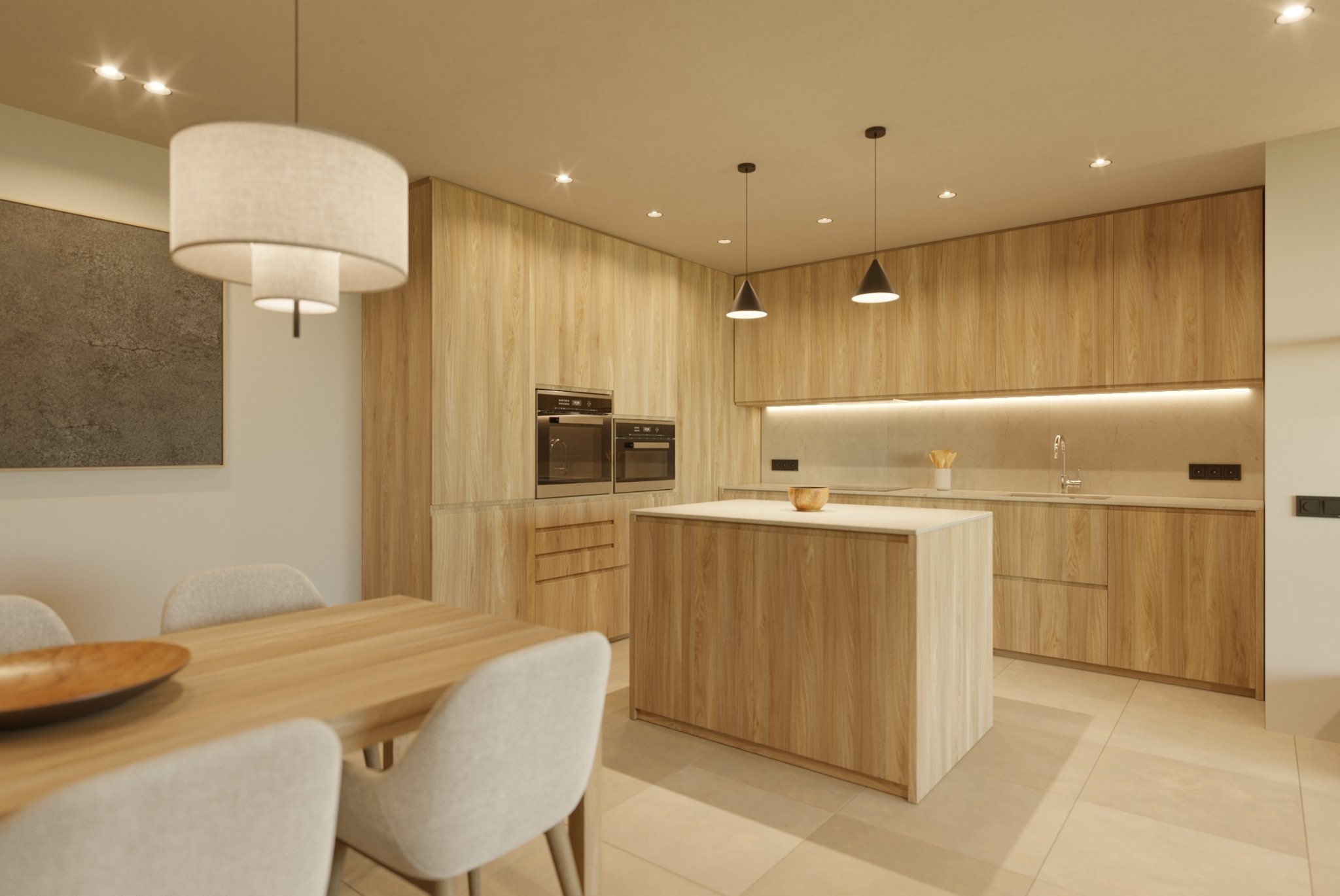 C'an Juliá será un proyecto especialmente singular ya que constará de sólo 6 apartamentos de lujo, por lo que será ideal para aquellos que busquen una promoción más privada y exclusiva en la zona. Este apartamento en concreto es un primer priso con una superficie interior de 127 m2 más 18 m2 de terraza. La vivienda está distribuida en 3 dormitorios, 2 baños, un amplio salón comedor con cocina integrada y acceso directo a la terraza. Tendrá una cocina moderna con electrodomésticos integrados de alta gama, mucha luz natural y baños de ensueño. Can Estade ofrecerá distribuciones diáfanas de 3 dormitorios con superficies habitables de 121 a 204 m2 y terrazas y jardines de 72 a 180 m2. También cabe destacar que el edificio ofrecerá a sus residentes un cuidado jardín mediterráneo con una piscina comunitaria.